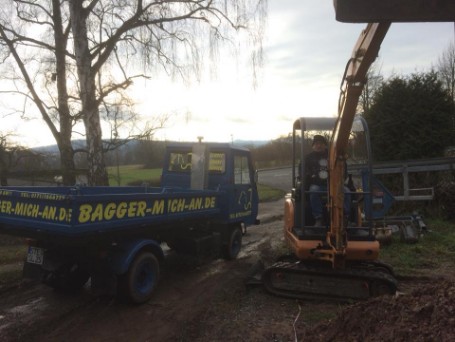 Eine Kombination aus Bagger und Mini LKW ergibt eine Starke Lösung.
